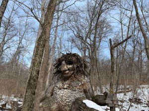 Bernheim Forest in Kentucky features forest trails with the iconic large troll sculptures integrated naturally per usual.
